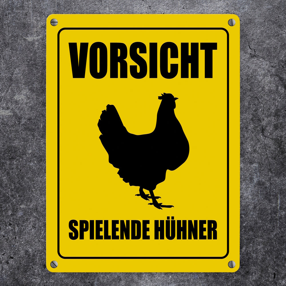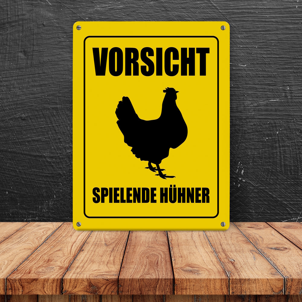 Vorsicht spielende Hühner Metallschild mit Huhn Motiv