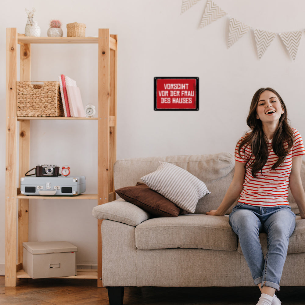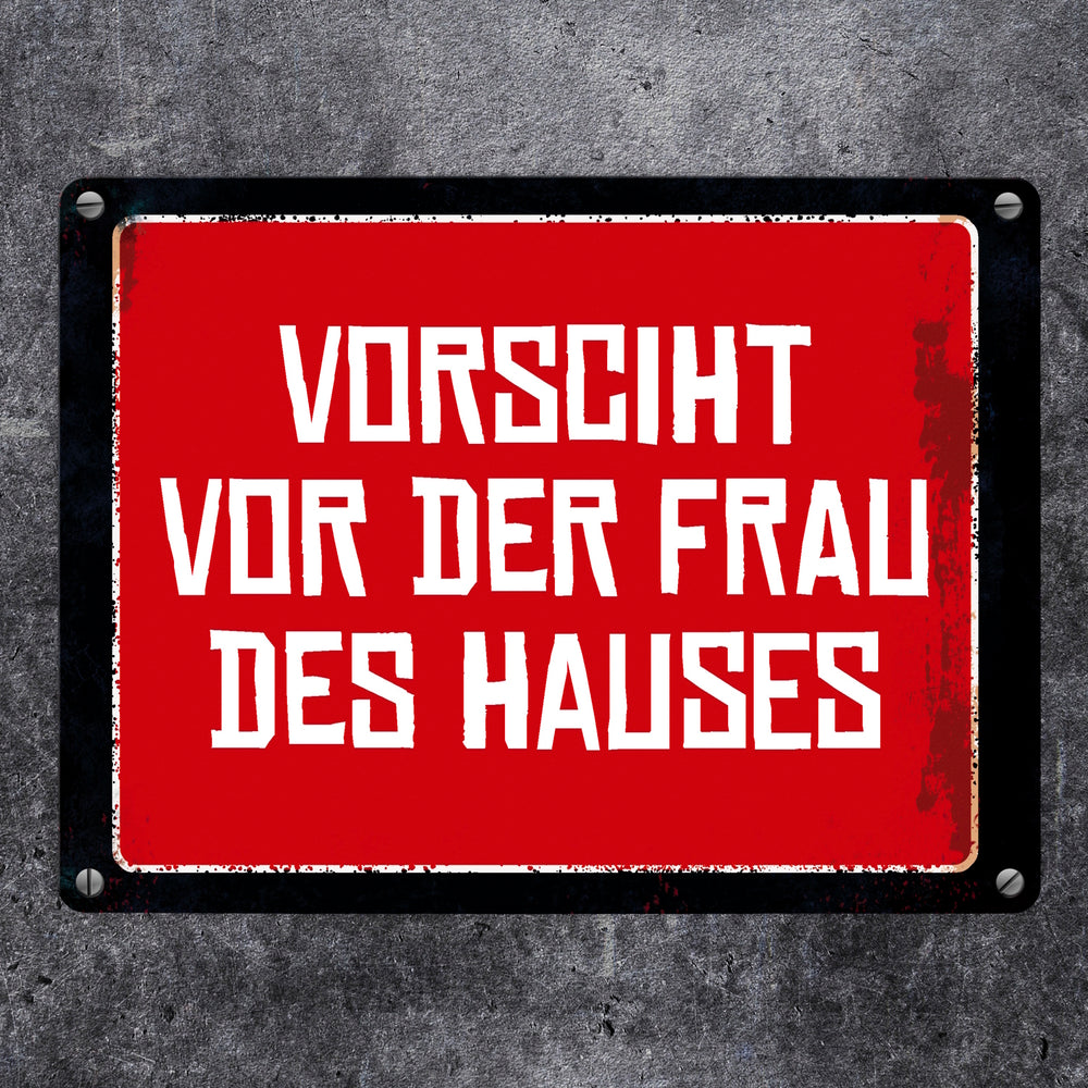 • Lieferumfang: 1x Vorsicht vor der Frau des Hauses Warn- und Hinweisschild im Used-Look