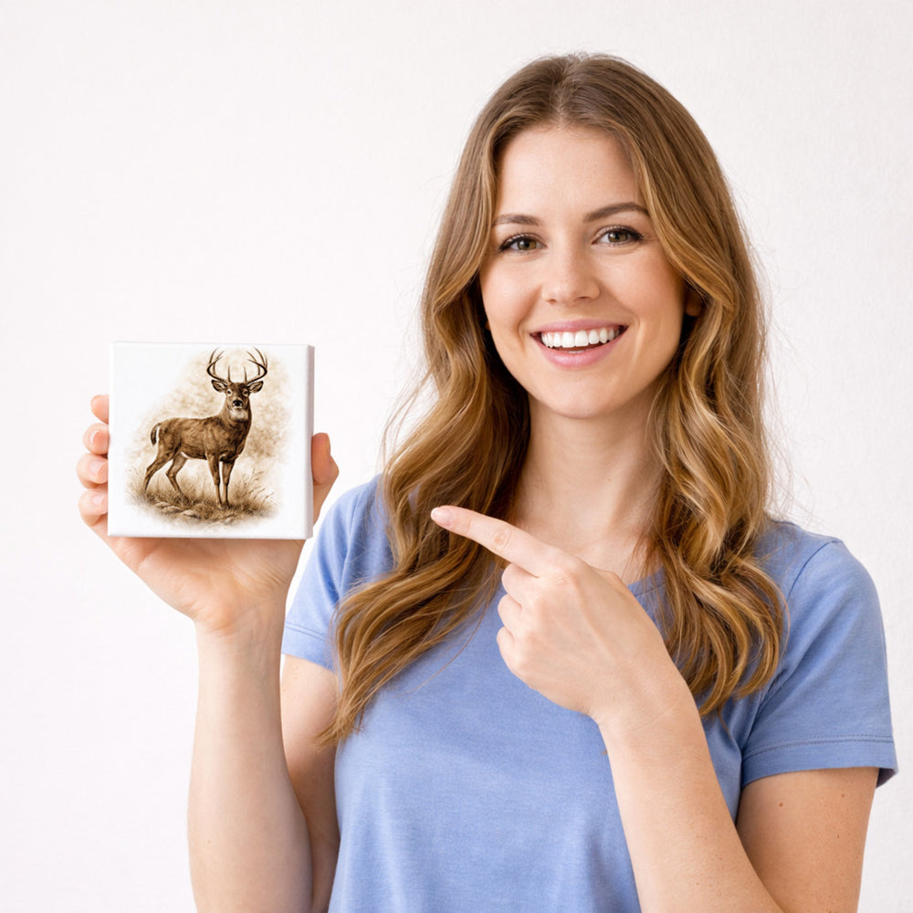 Wald Schönheit Hirsch im Gras Holzbild in 10x10 cm zum Stellen oder Aufhängen - 37-41 ist auf Lager und wird versandt, sobald es wieder verfügbar ist