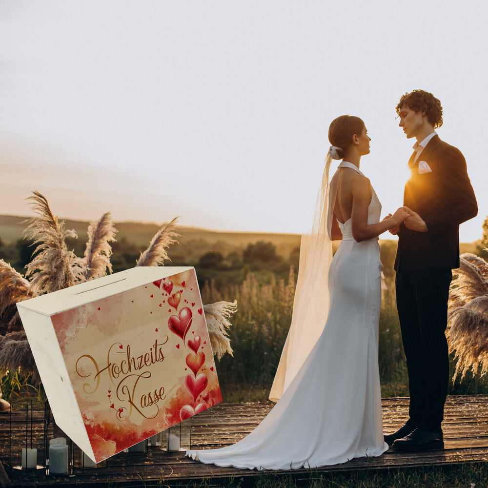 - Mach dein Hochzeitsgeschenk zu etwas Besonderem mit der "Wasserfall aufsteigender Herzen" Spardose! Diese romantische Spardose ist ein echter Hingucker mit verträumtem Hintergrund und zarten Rosa, Rot und Goldtönen. Perfekt, um das Brautpaar auf charmante Weise an ihre ersten gemeinsamen Ersparnisse zu erinnern.