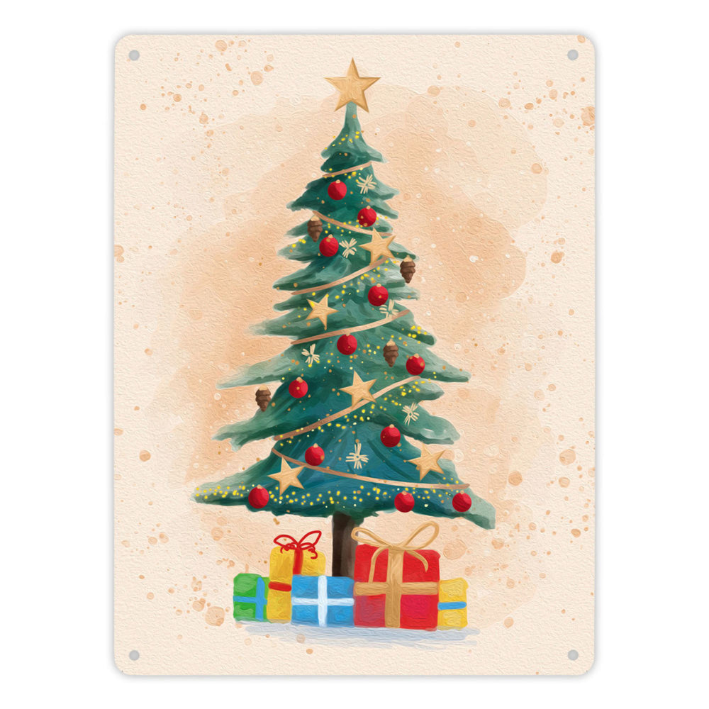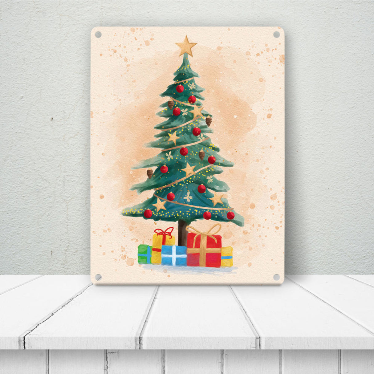 Weihnachtsbaum mit Geschenken Metallschild mit Text