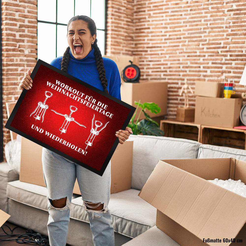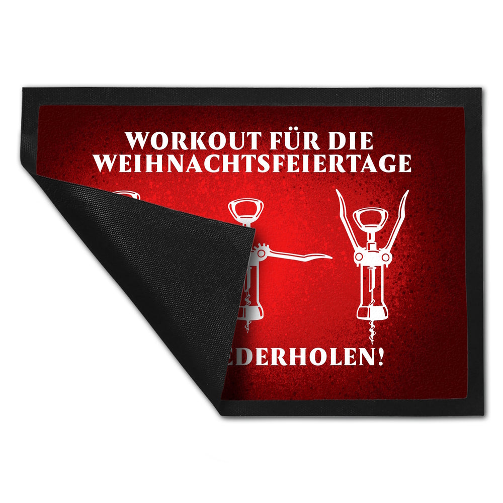 - 1x Weihnachtsfeiertage Wein Workout mit Korkenzieher Fußmatte in der gewählten Größe
