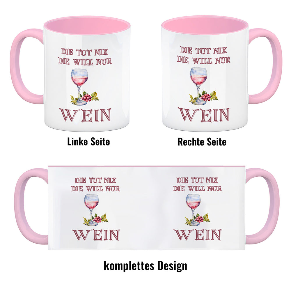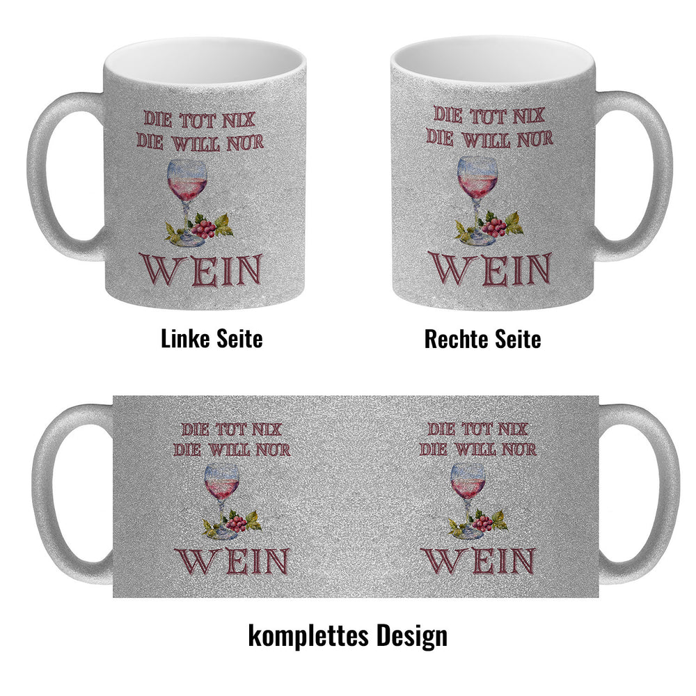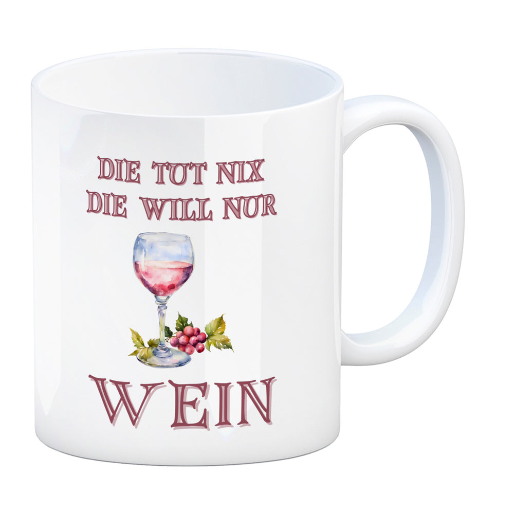 Wein Kaffeebecher mit Spruch Die tut nix die will nur Wein