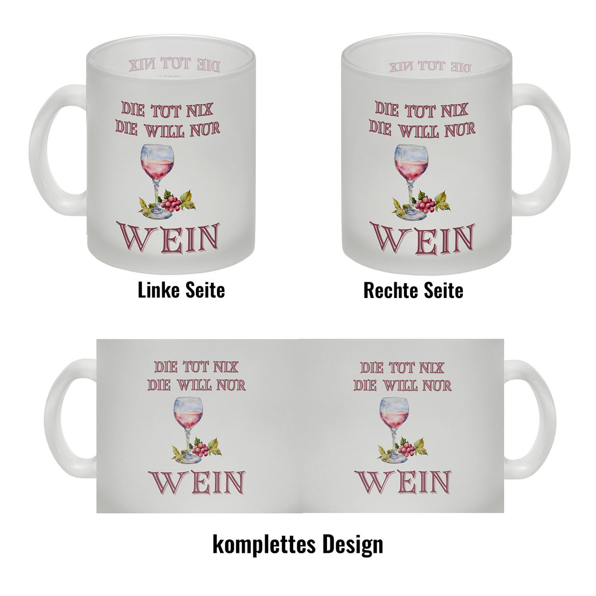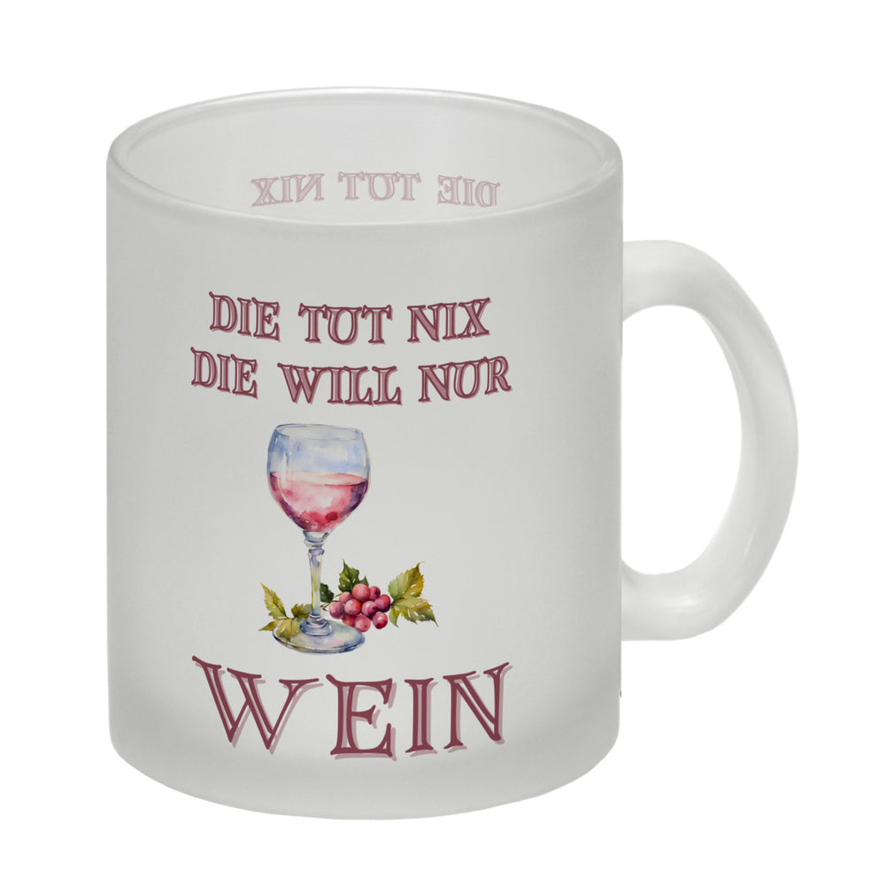 - 1x Wein Kaffeebecher mit Spruch Die tut nix die will nur Wein in der gewählten Ausführung