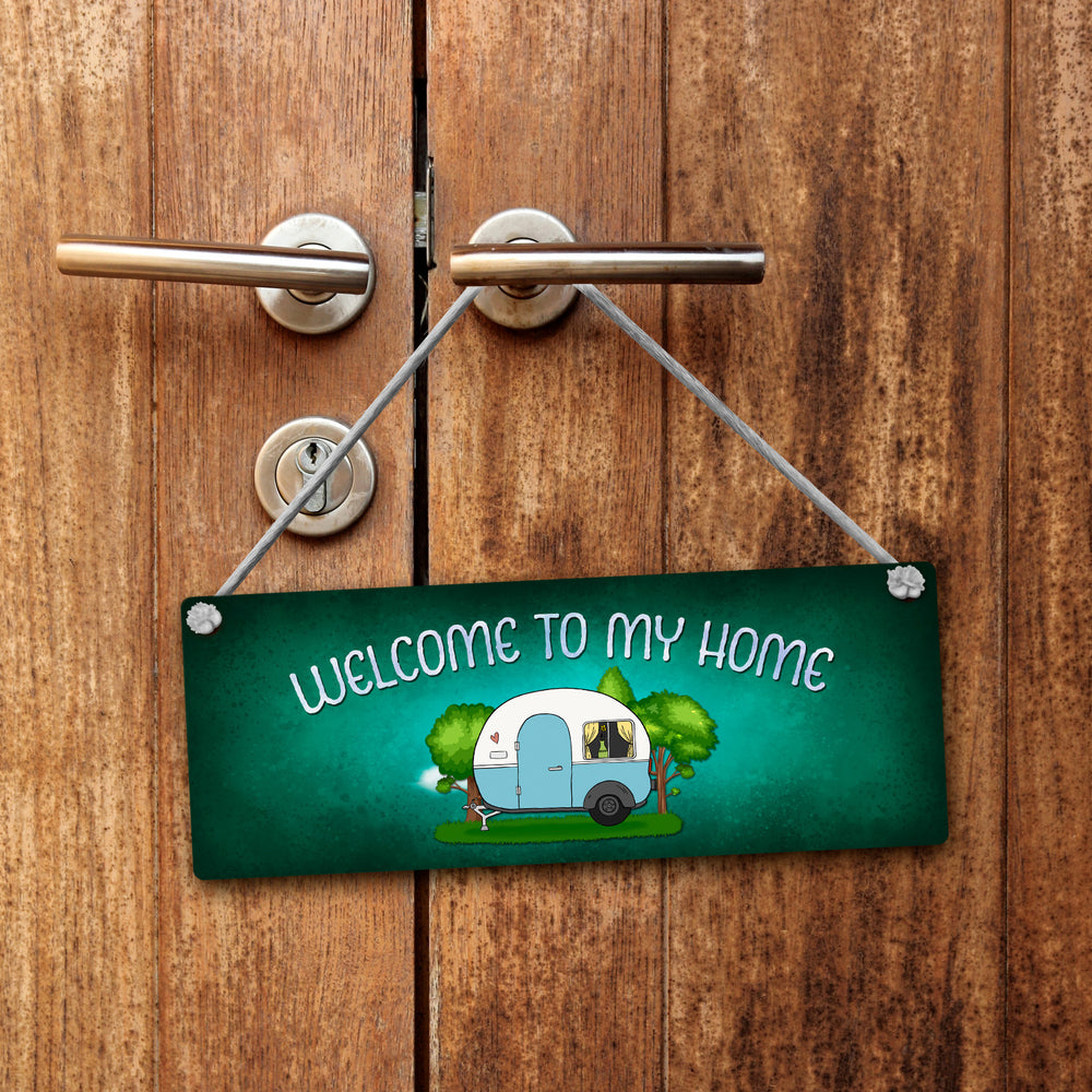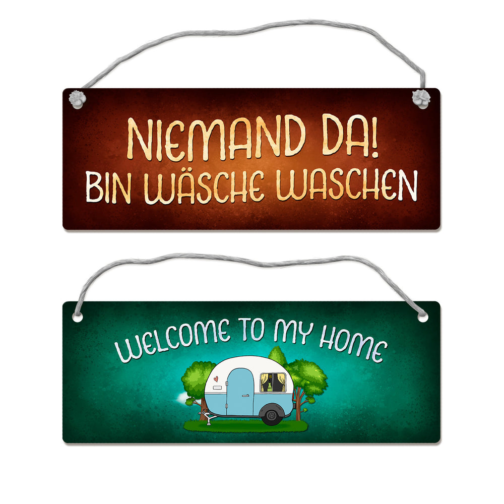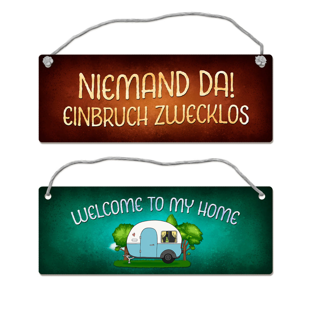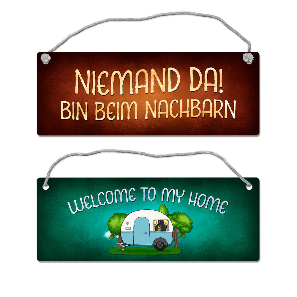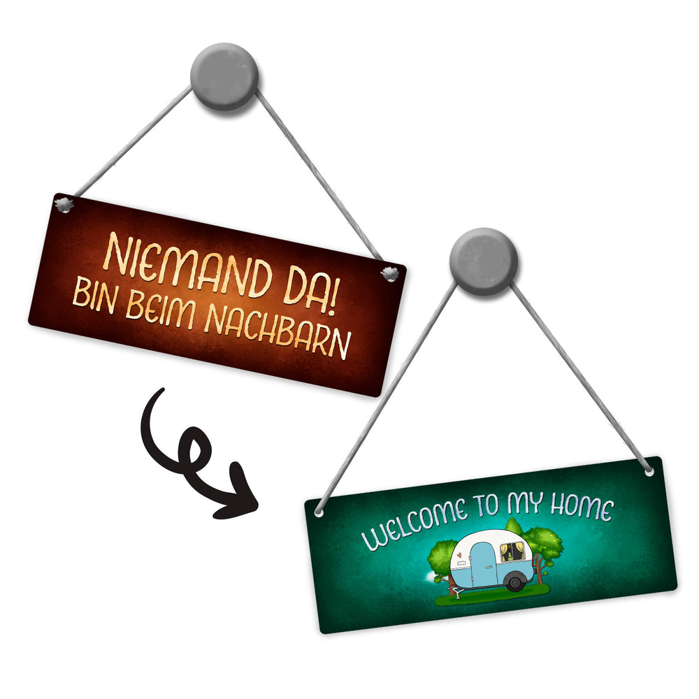 Welcome to my home oder bin beim Nachbarn Camping Wendeschild mit Kordel