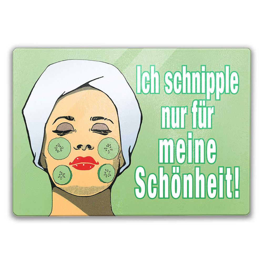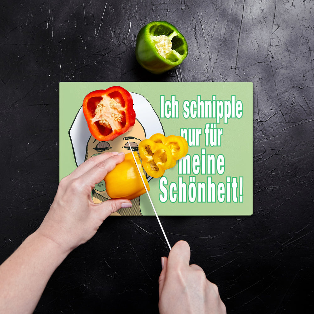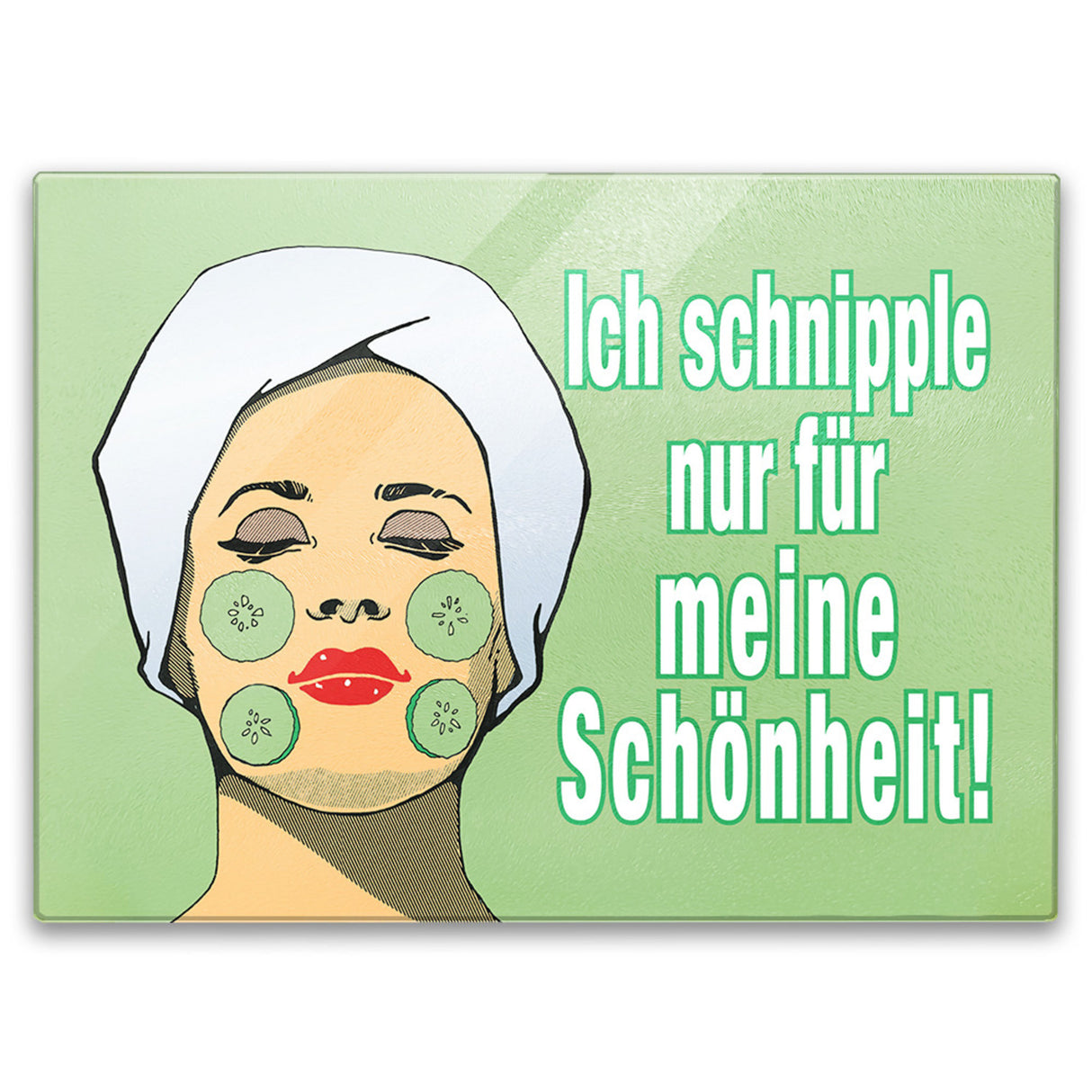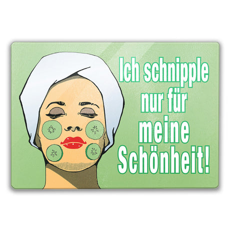 Wellness Schneidebrett aus Glas Glas mit Spruch Ich schnipple nur für meine Schönheit