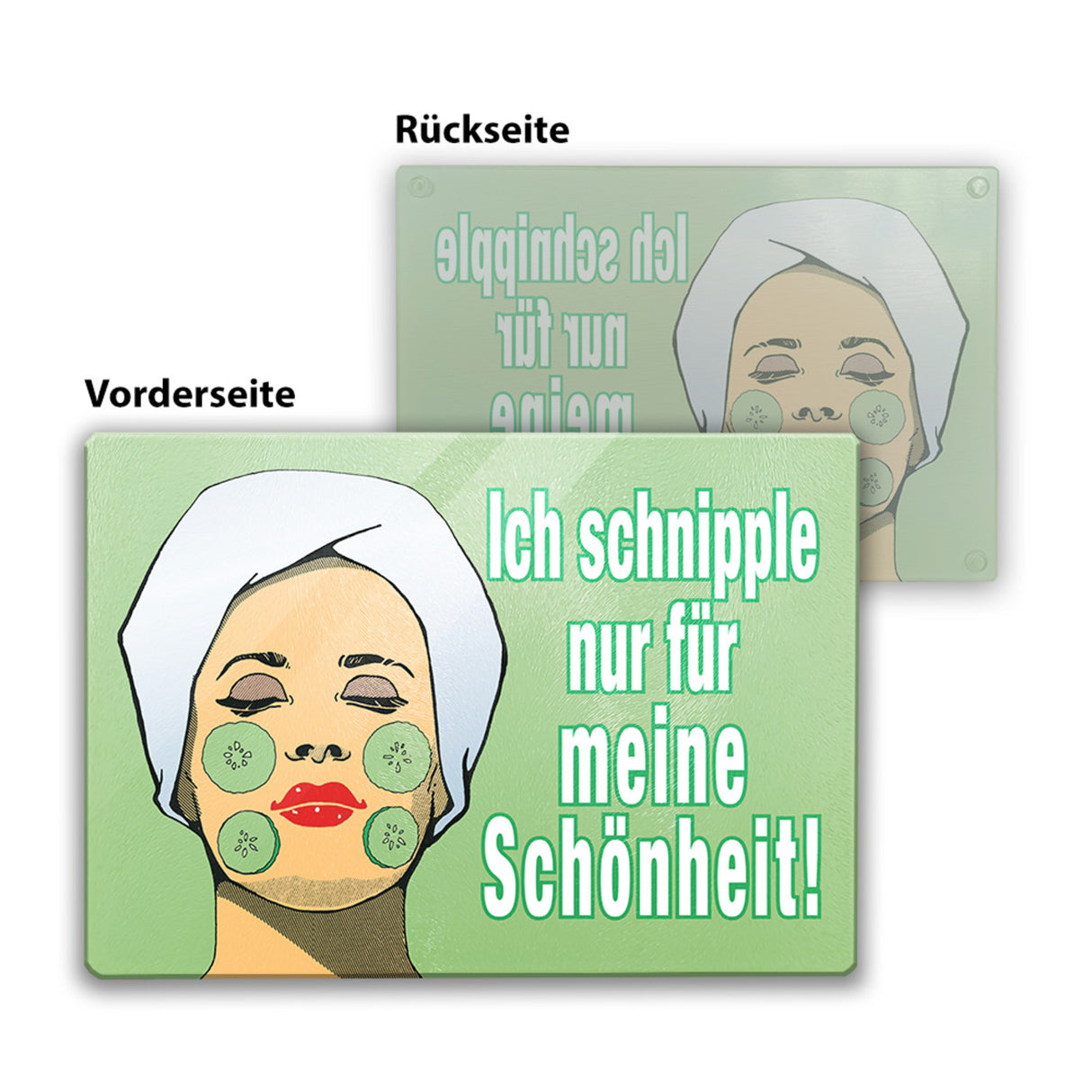 - 1x Wellness Schneidebrett aus Glas Glas mit Spruch Ich schnipple nur für meine Schönheit in der gewählten Größe