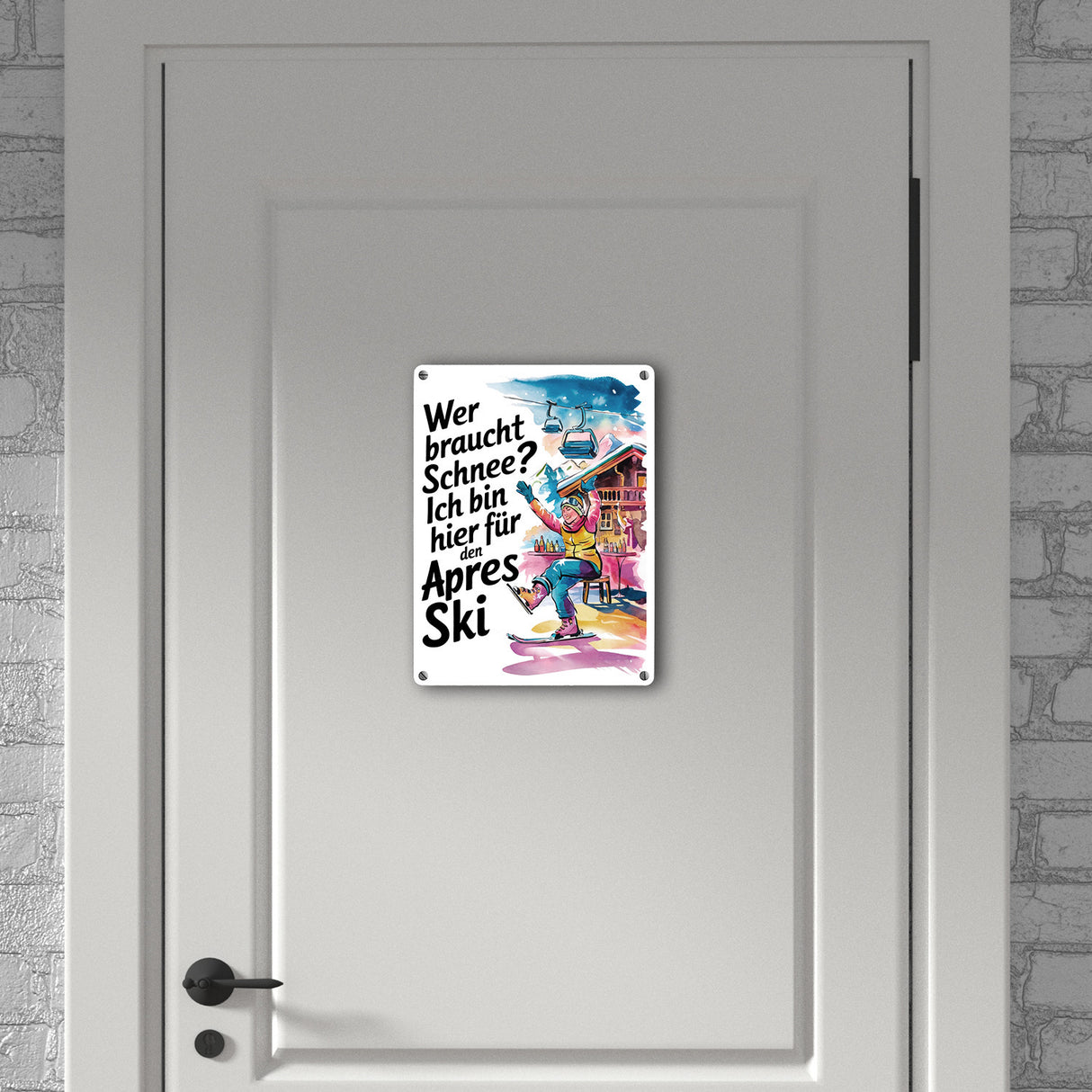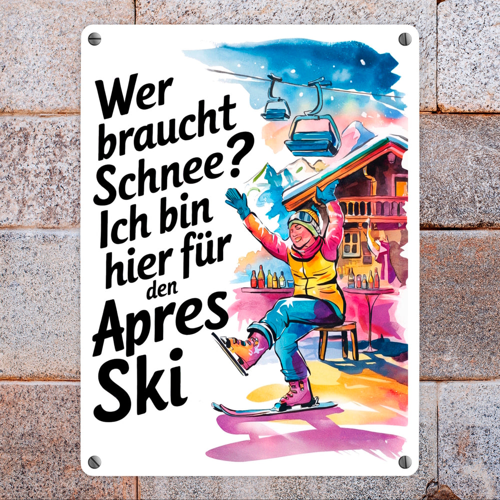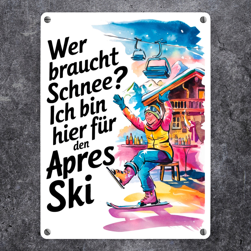 Wer braucht Schnee? Ich bin hier für den Aprés-Ski Metallschild in 15x20 cm