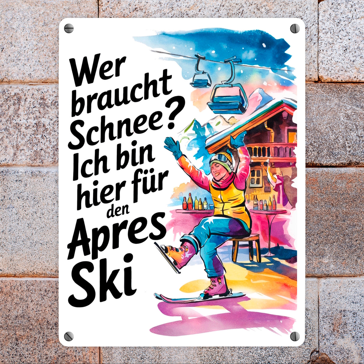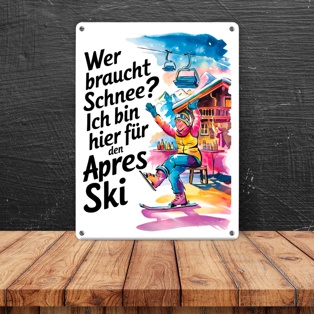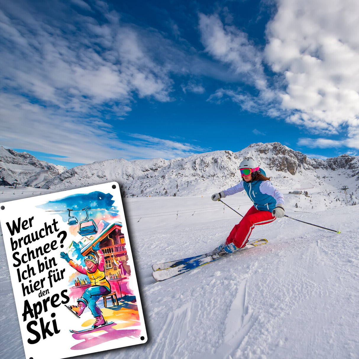 - 1x Wer braucht Schnee? Ich bin hier für den Aprés-Ski Metallschild in 15x20 cm in der gewählten Größe