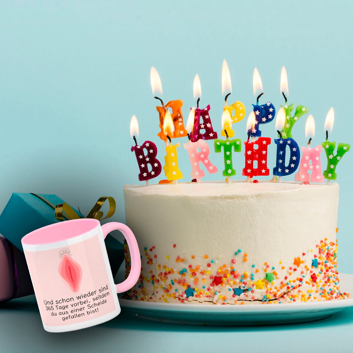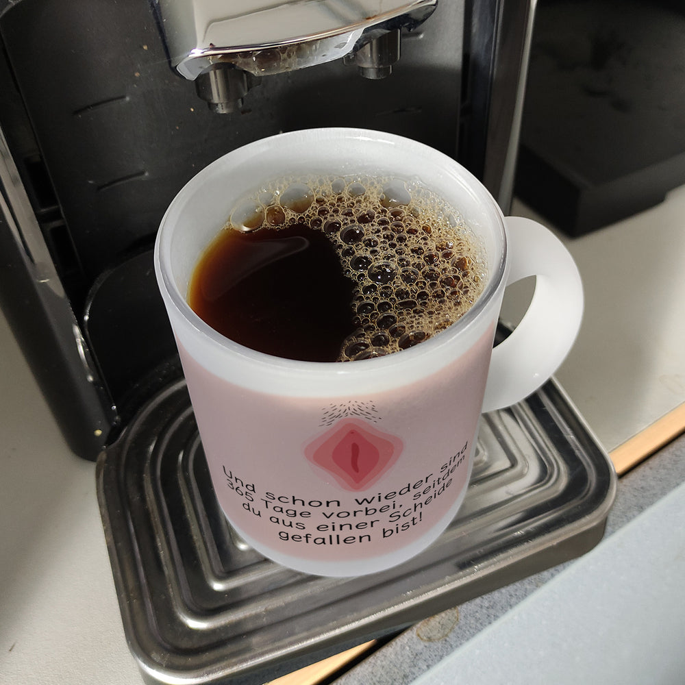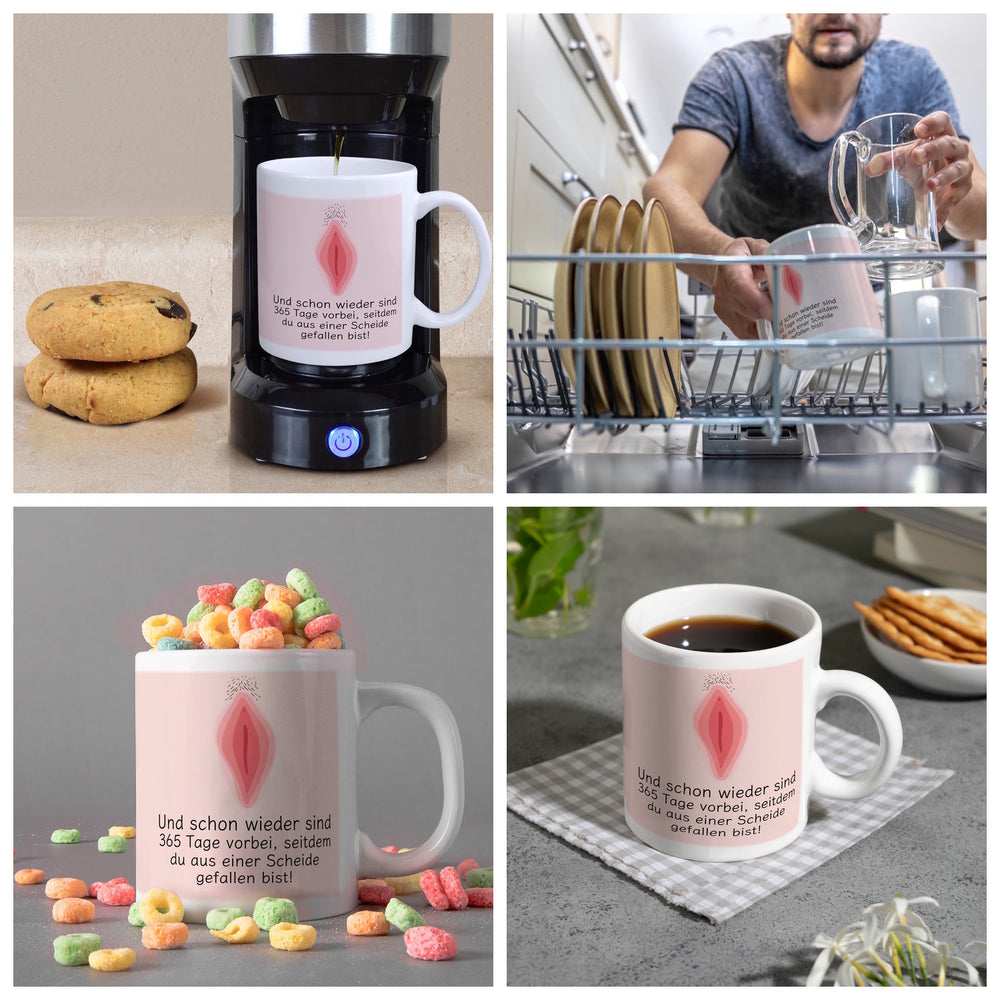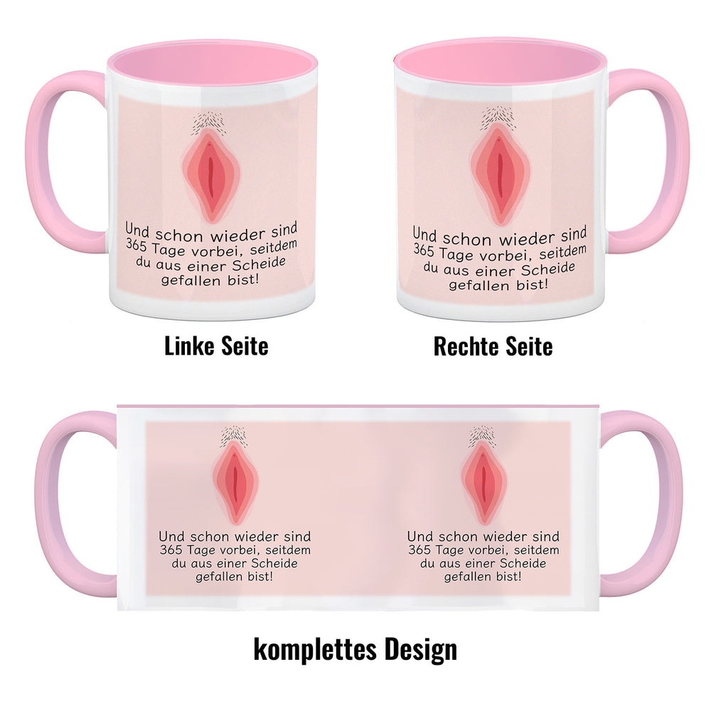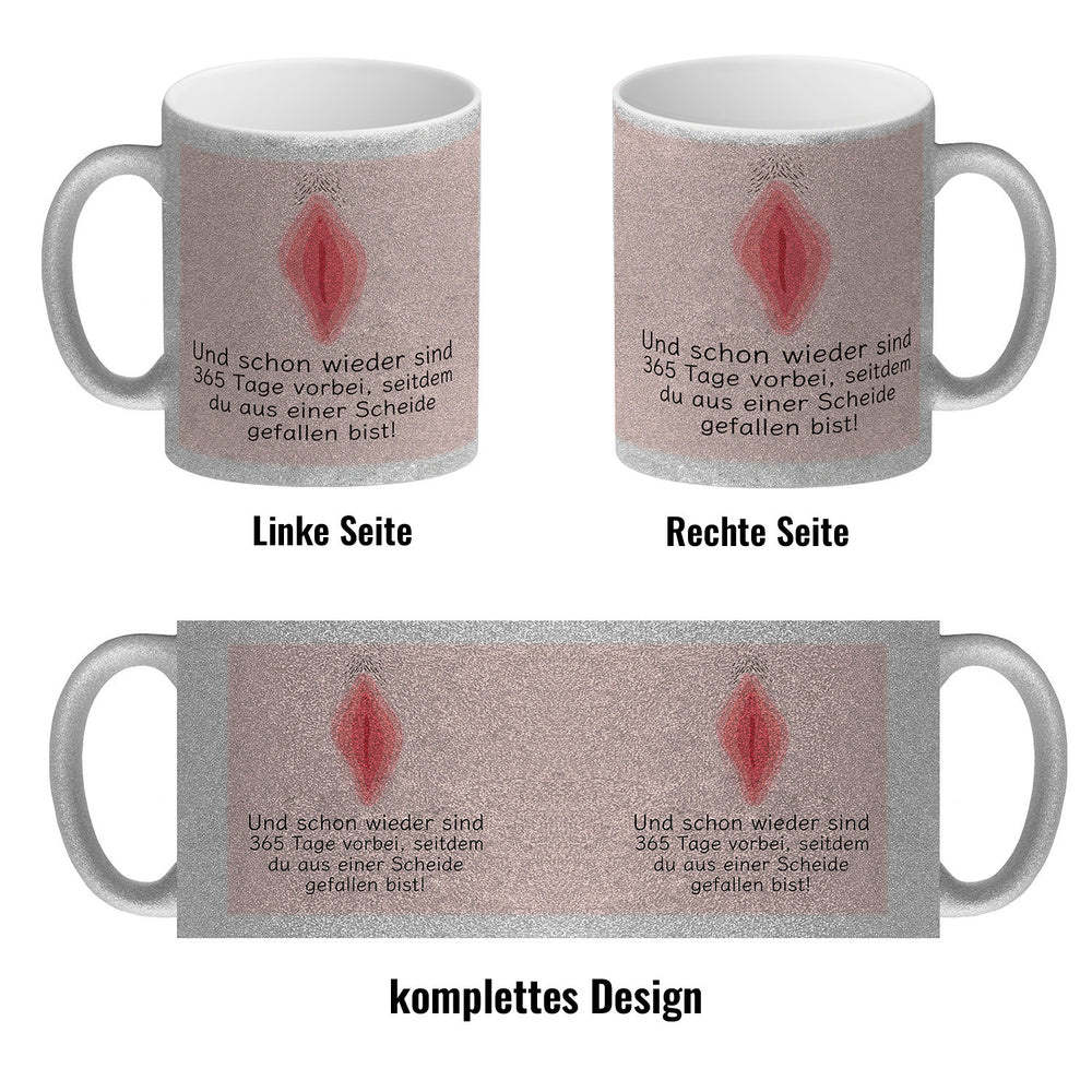 - 1x Wieder sind 365 Tage vorbei… Geburtstag Kaffeebecher mit Scheide Motiv in der gewählten Ausführung