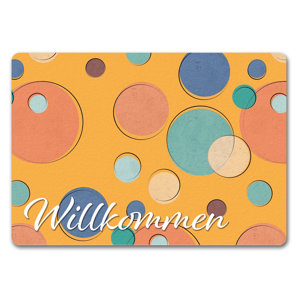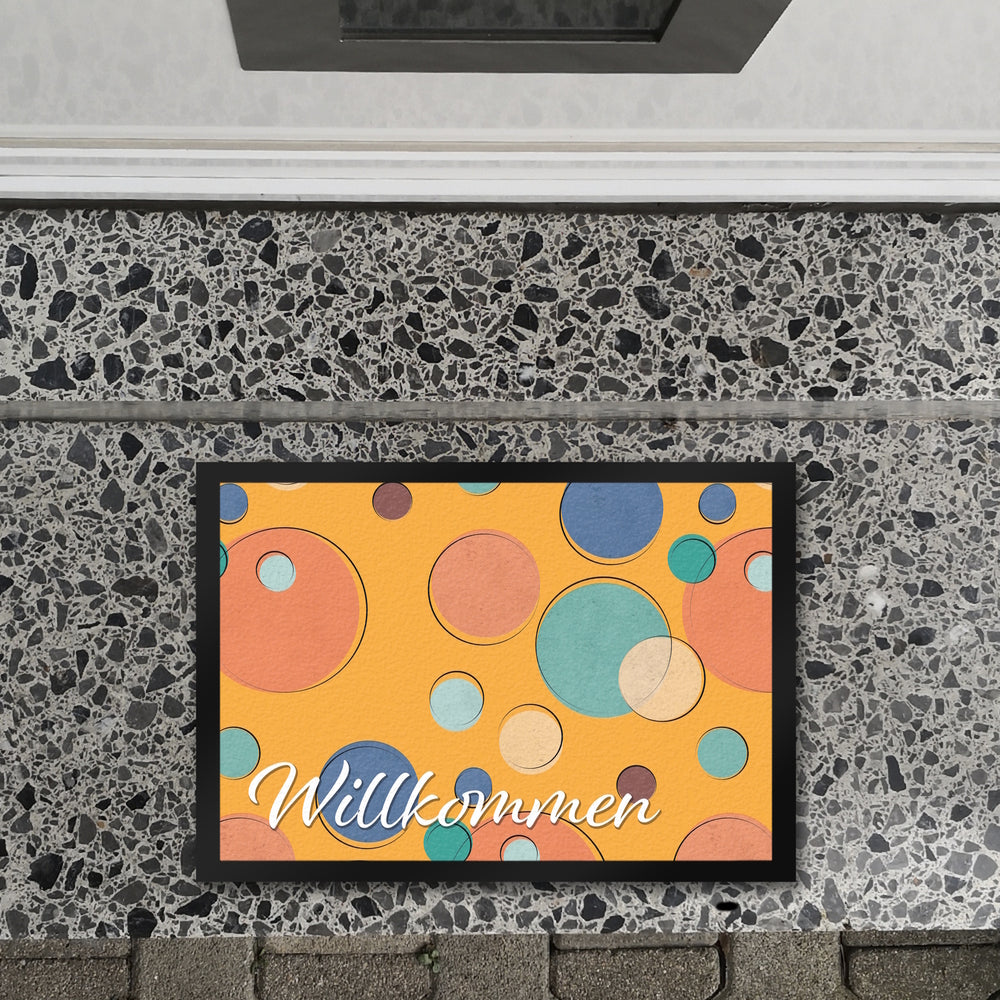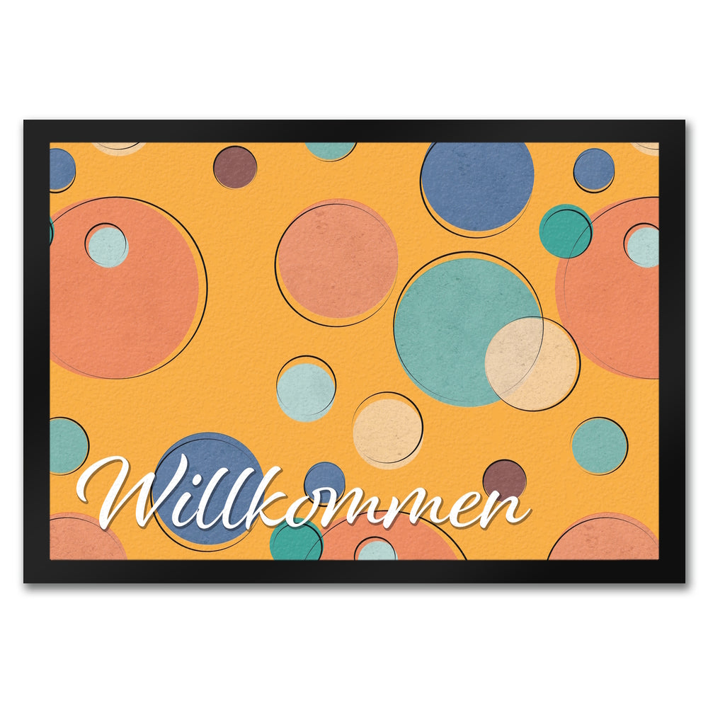 - 1x Willkommen Fußmatte mit schönem buntem Kreismuster in der gewählten Größe