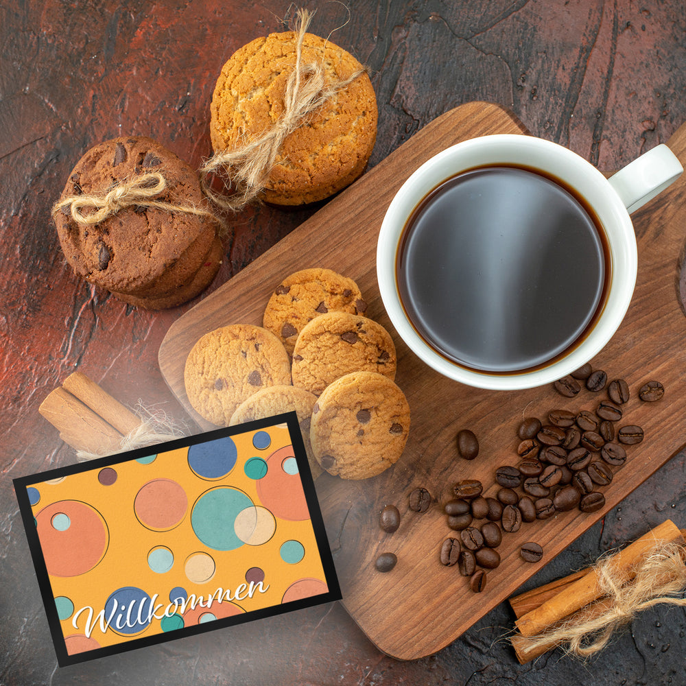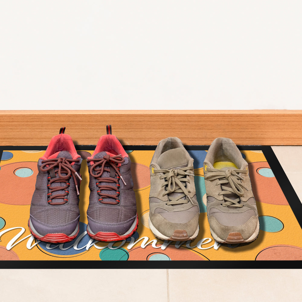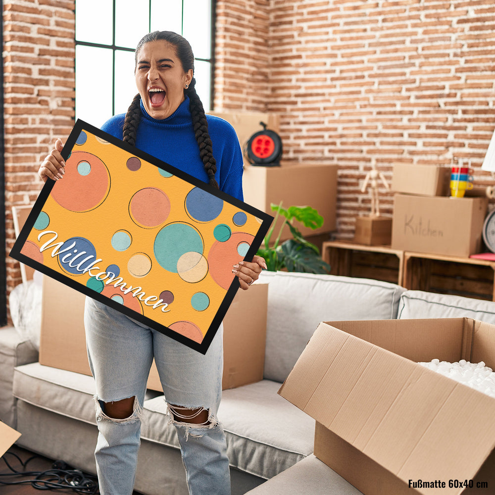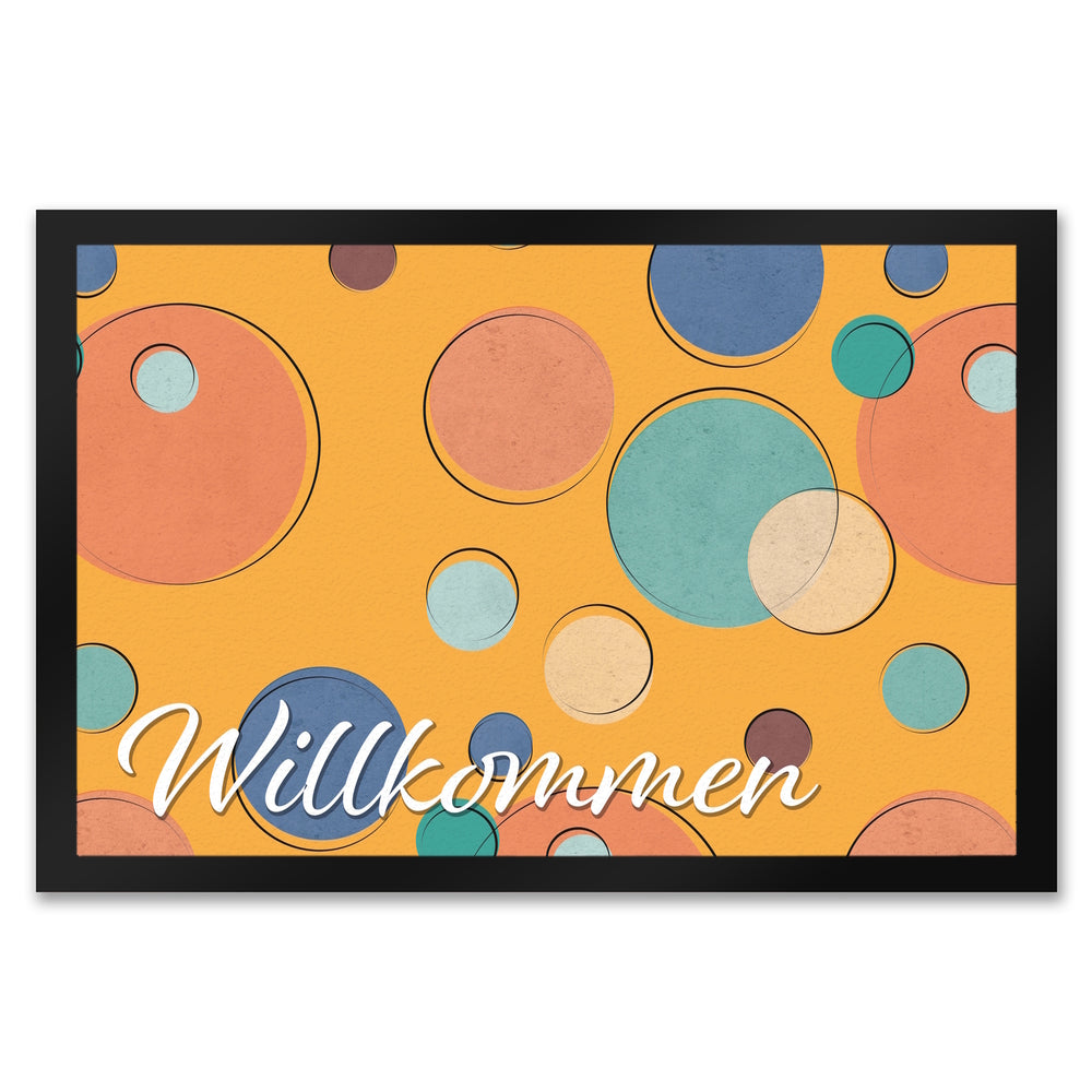 - 1x Willkommen Fußmatte mit schönem buntem Kreismuster in der gewählten Größe