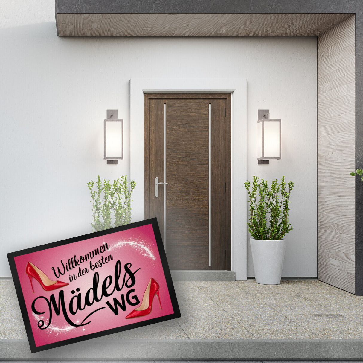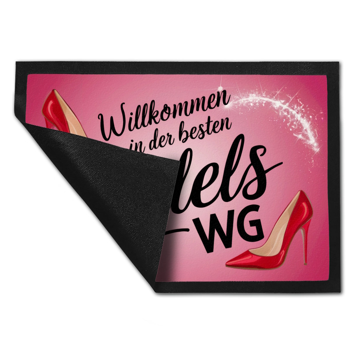 • 1x Willkommen in der besten MädelsWG Fußmatte in 35x50 cm mit High-Heels in der gewählten Größe