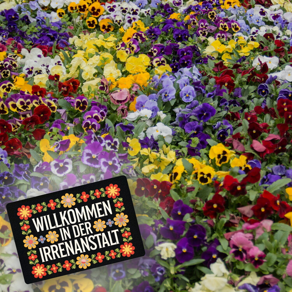 - 1x Willkommen in der Irrenanstalt Blumensprache Fußmatte in 35x50 cm ohne Rand im Retro-Stil in der gewählten Größe