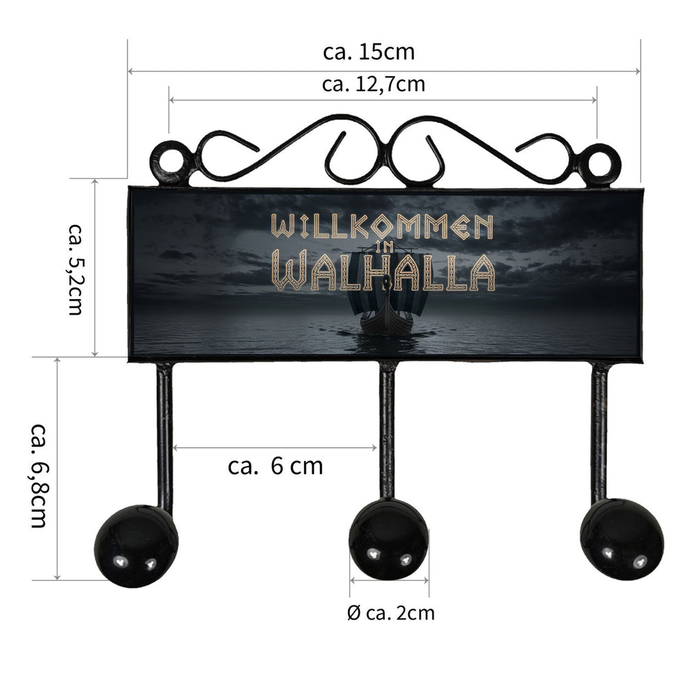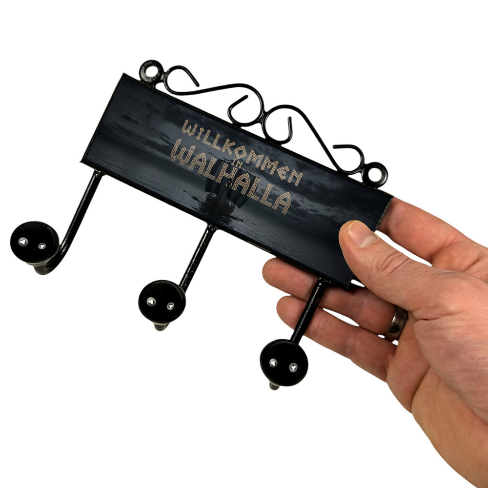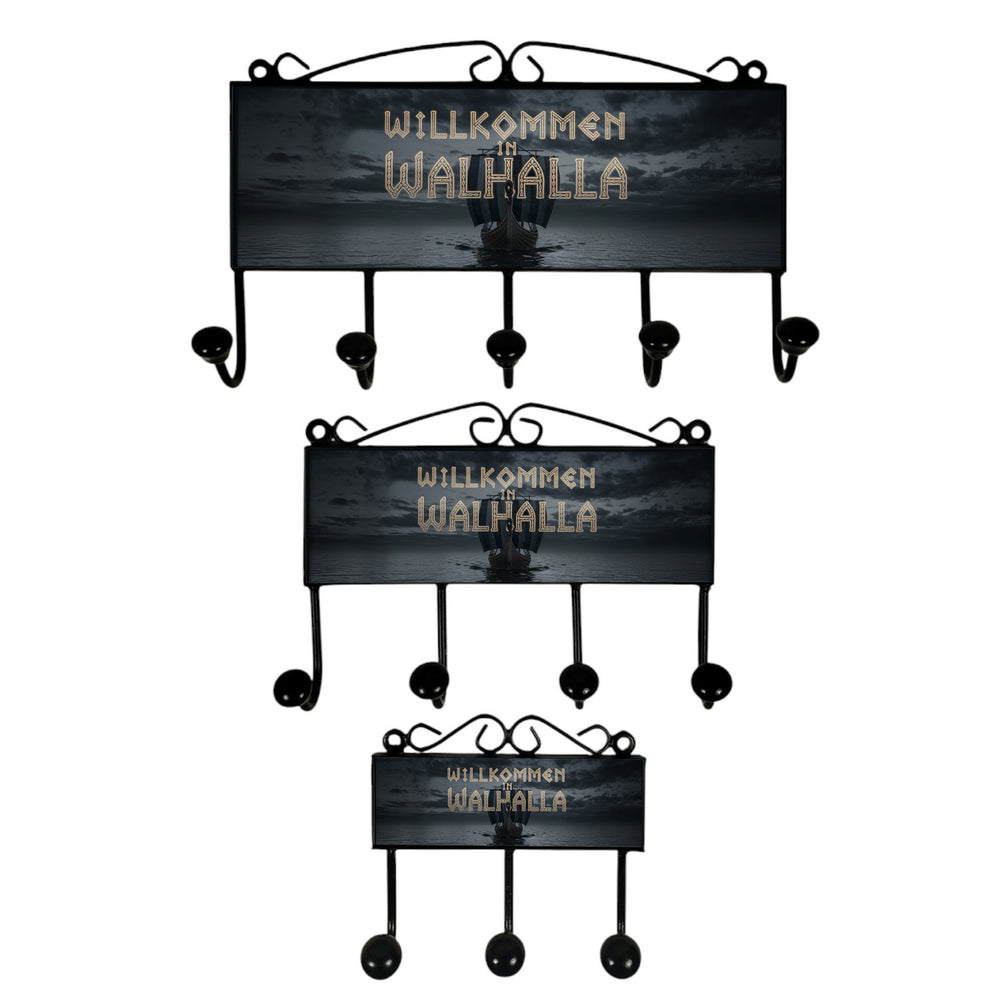 - 1x Willkommen in Walhalla Kleiderhaken Leiste mit 3 Haken Wikingerschiff in der gewählten Größe