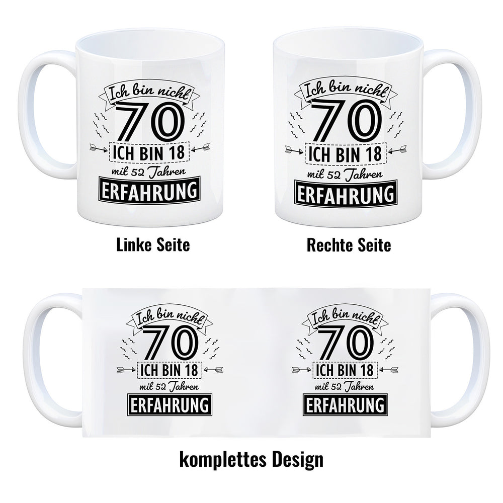 - 1x Witziger Kaffeebecher für den 70. Geburtstag mit Motiv: Erfahrung in der gewählten Ausführung