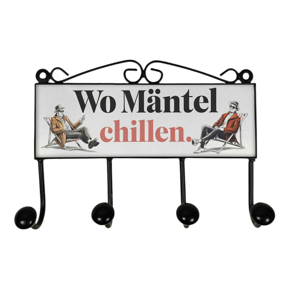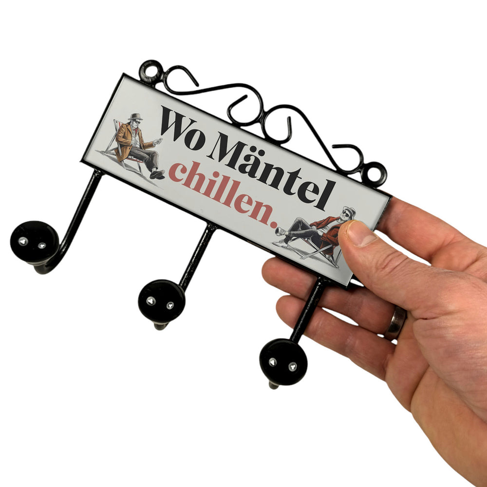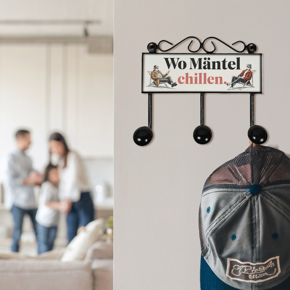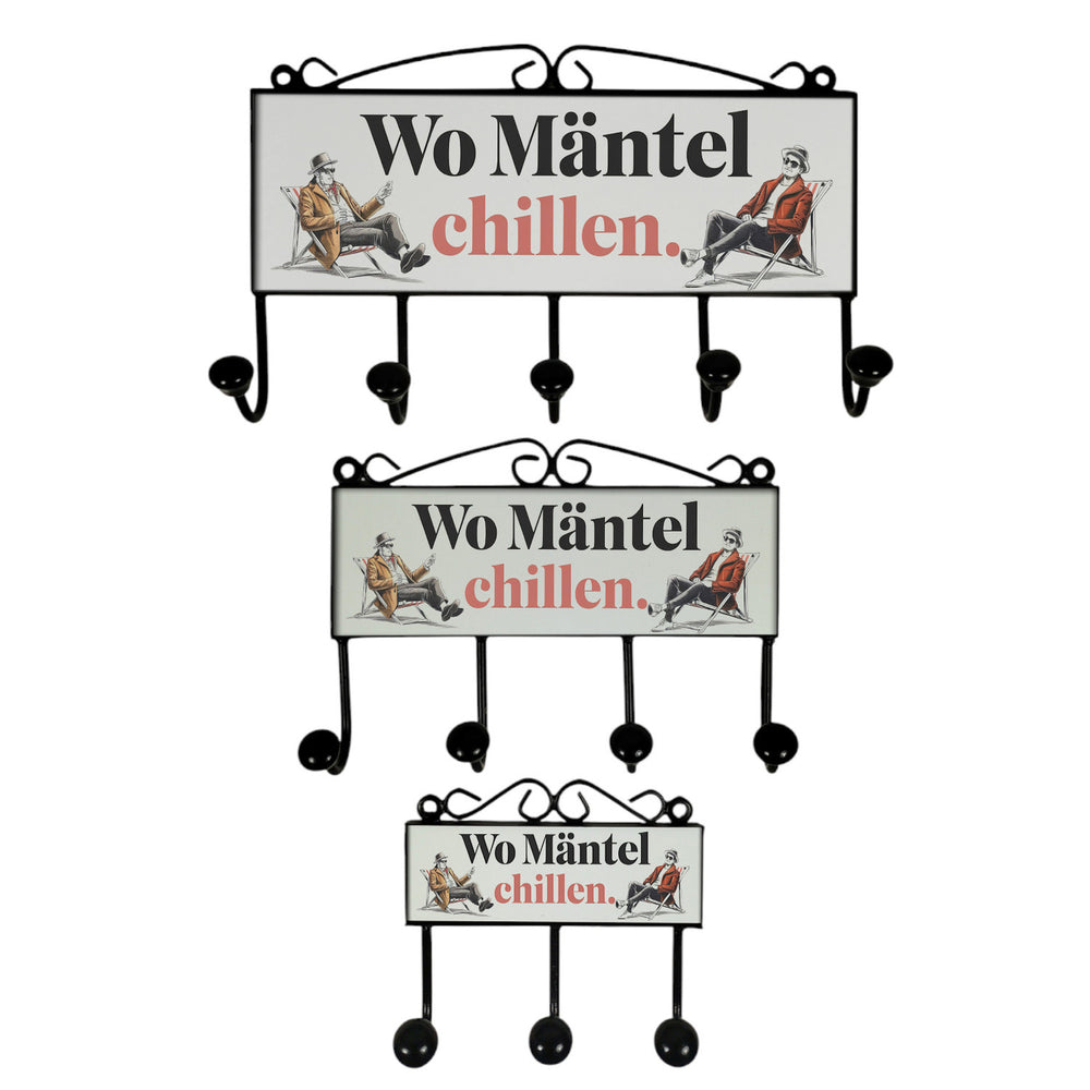 - Der humorvolle Kleiderhaken Wo Mäntel chillen ist ein echter Hingucker! Das 3er-Set überzeugt mit einem retro-inspirierten Design auf weißem Hintergrund. Zwei Männer entspannen auf Strandstühlen, während der freche Spruch in fetten Buchstaben darüber prangt. Perfekt für jeden, der Stil mit einem Augenzwinkern schätzt!