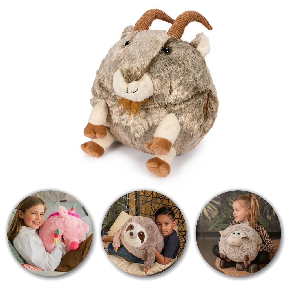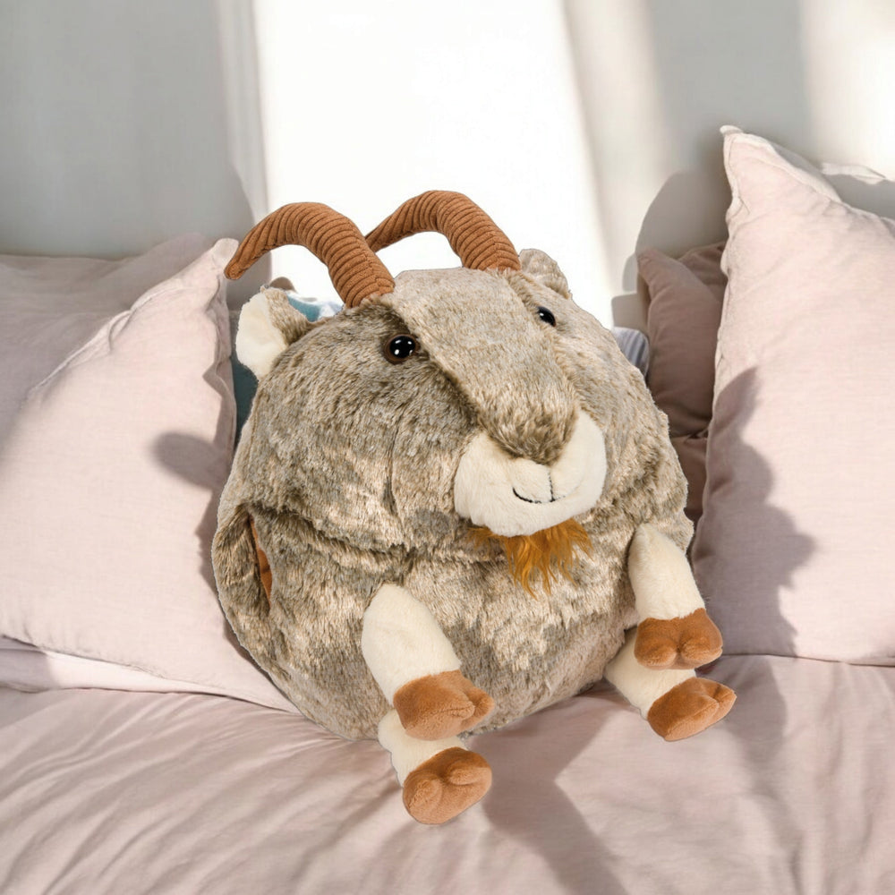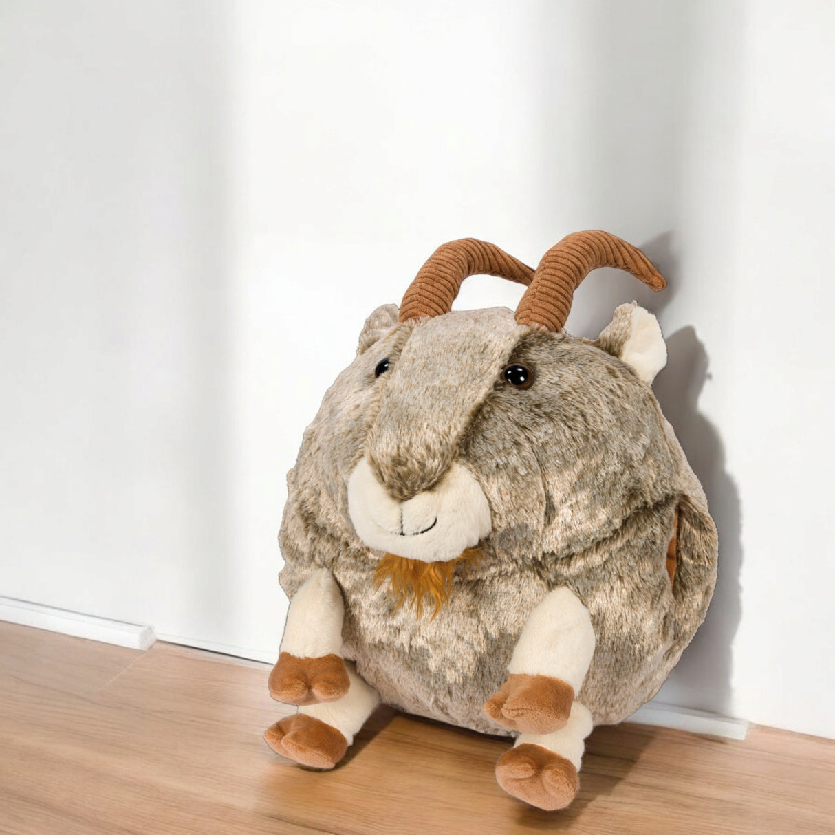 - Unsere bezaubernde Ziege hat graues Fell, riesige braune Augen und einen lustigen kleinen Bart. Sie besitzt vier niedliche Beine und zwei gemütliche Handöffnungen. Zwei charmante Hörner zieren ihren Kopf. Dieses Plüschtier ist mehr als nur ein Kuscheltier – es ist ein warmherziges Wohnaccessoire und Spielzeug zugleich!