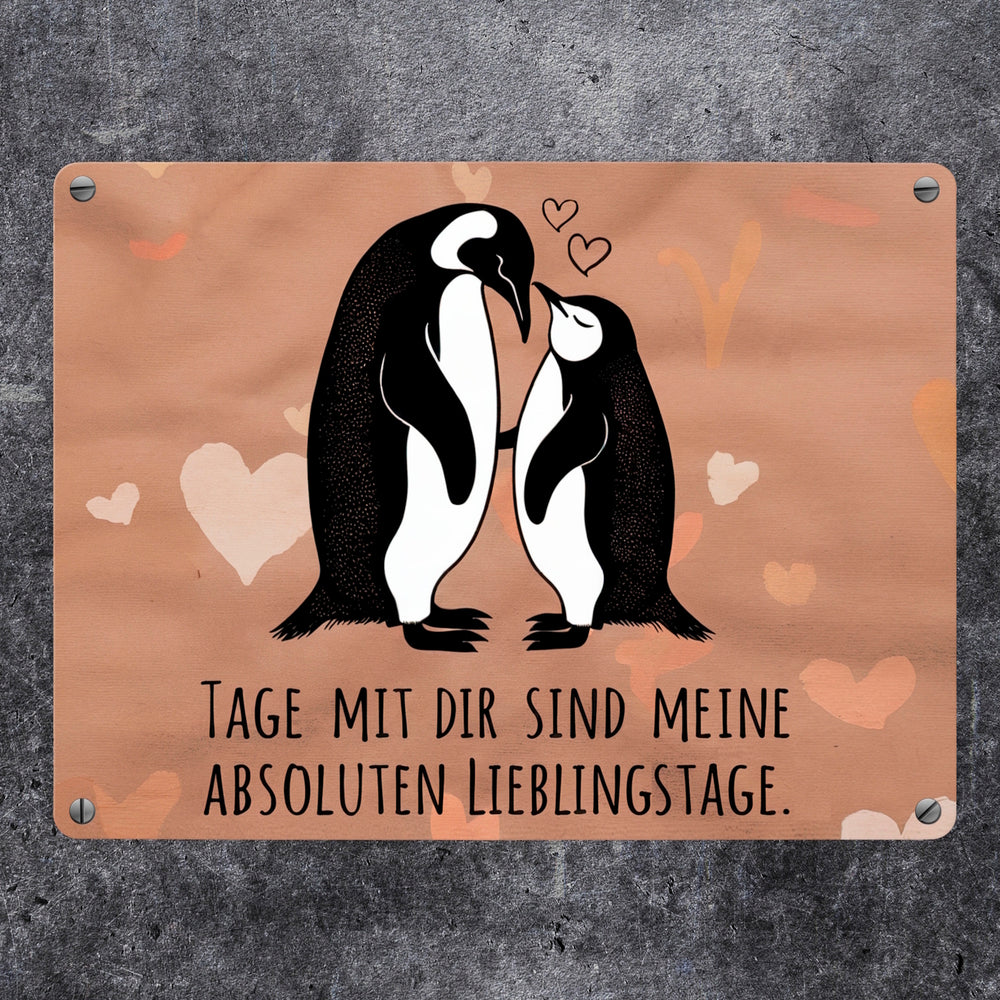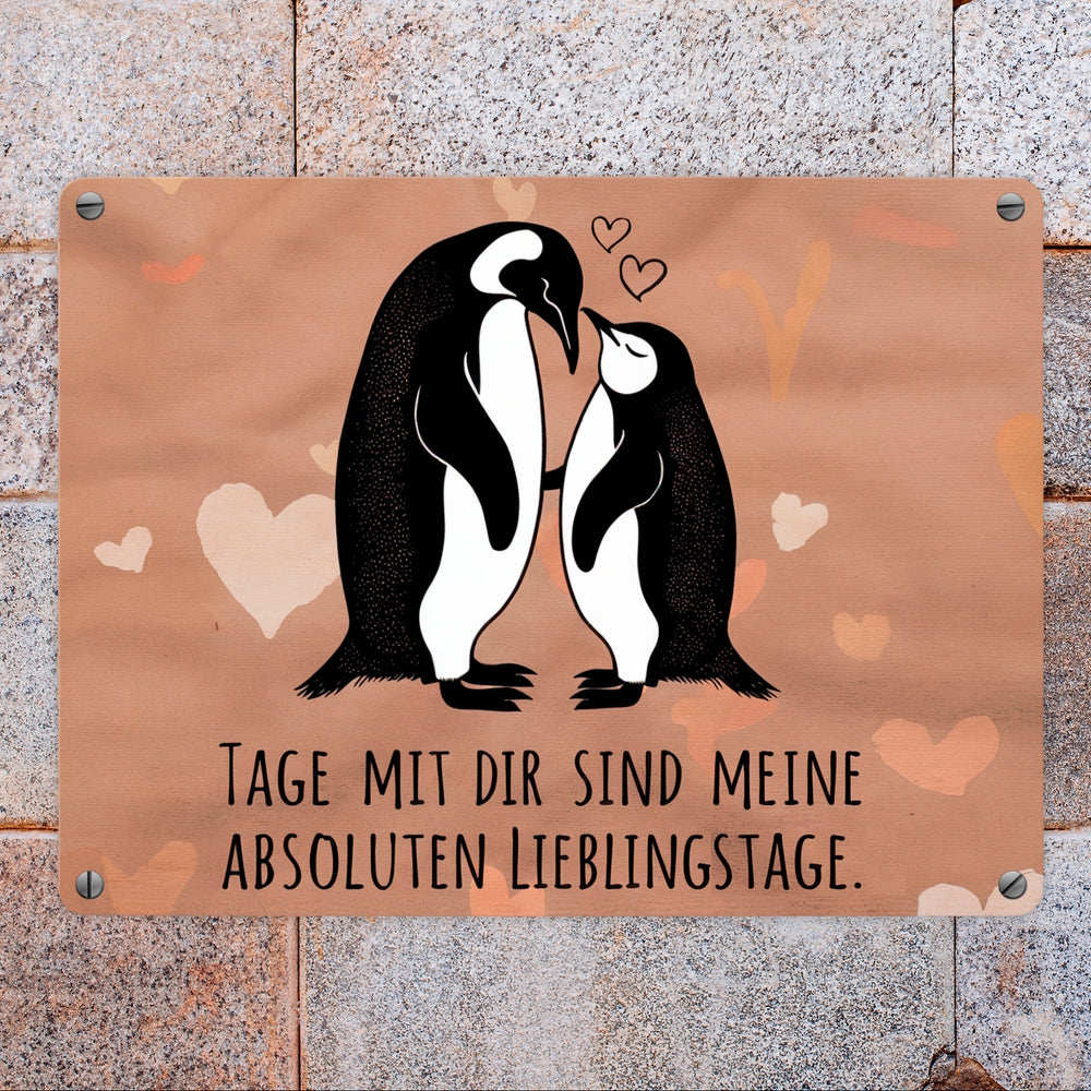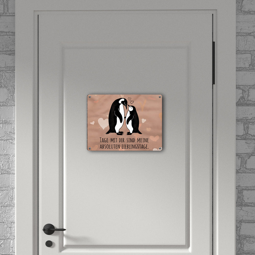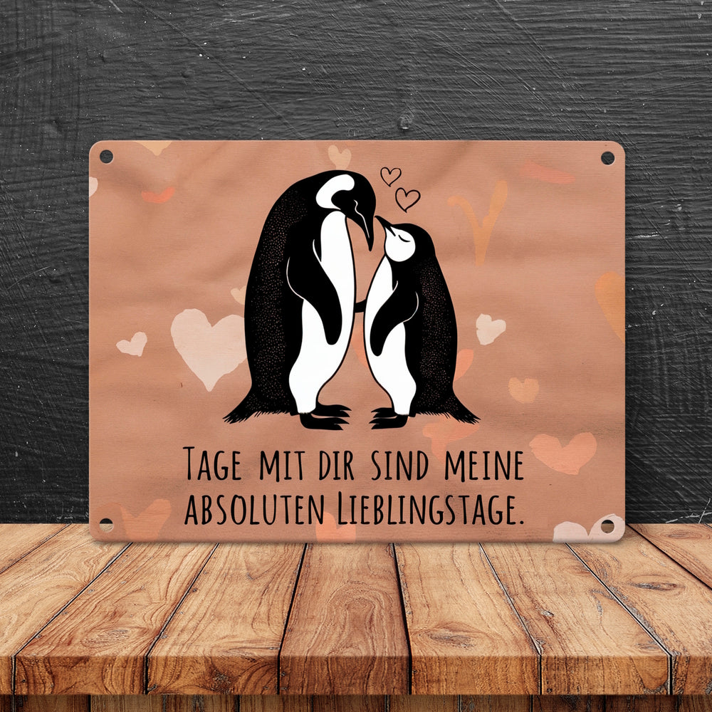 Zwei liebende Pinguine - Lieblingstage mit Dir Metallschild in 15x20 cm