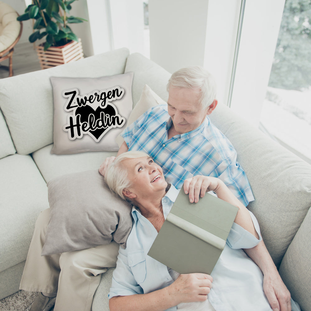 - Unser „Zwergen Heldin mit Herz Kissen“ ist ein charmantes und verspieltes Dekokissen. Mit einer handgezeichneten, kursiven Schrift prangt der Schriftzug „Zwergen Heldin“ in einer Herzform. Der fantasievolle Look und die süßen Details machen das Kissen zu einem echten Hingucker in jeder Wohnlandschaft.
