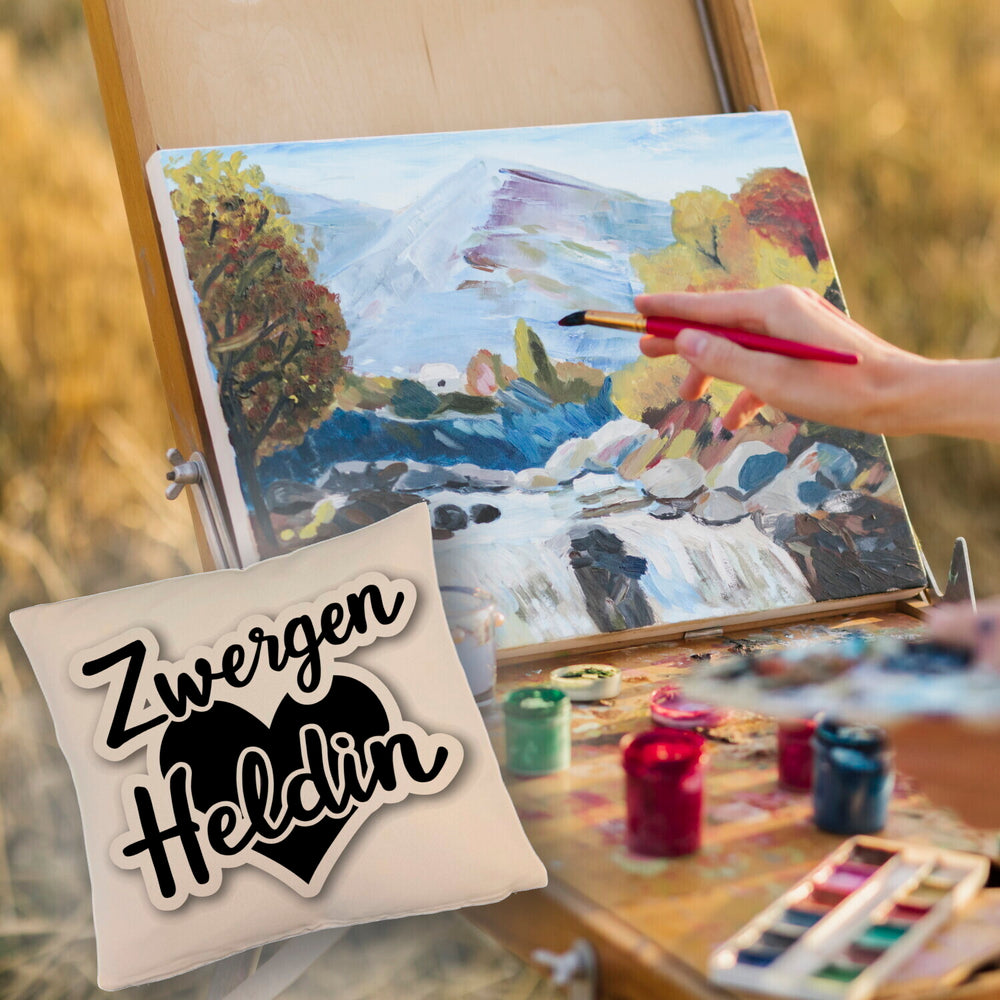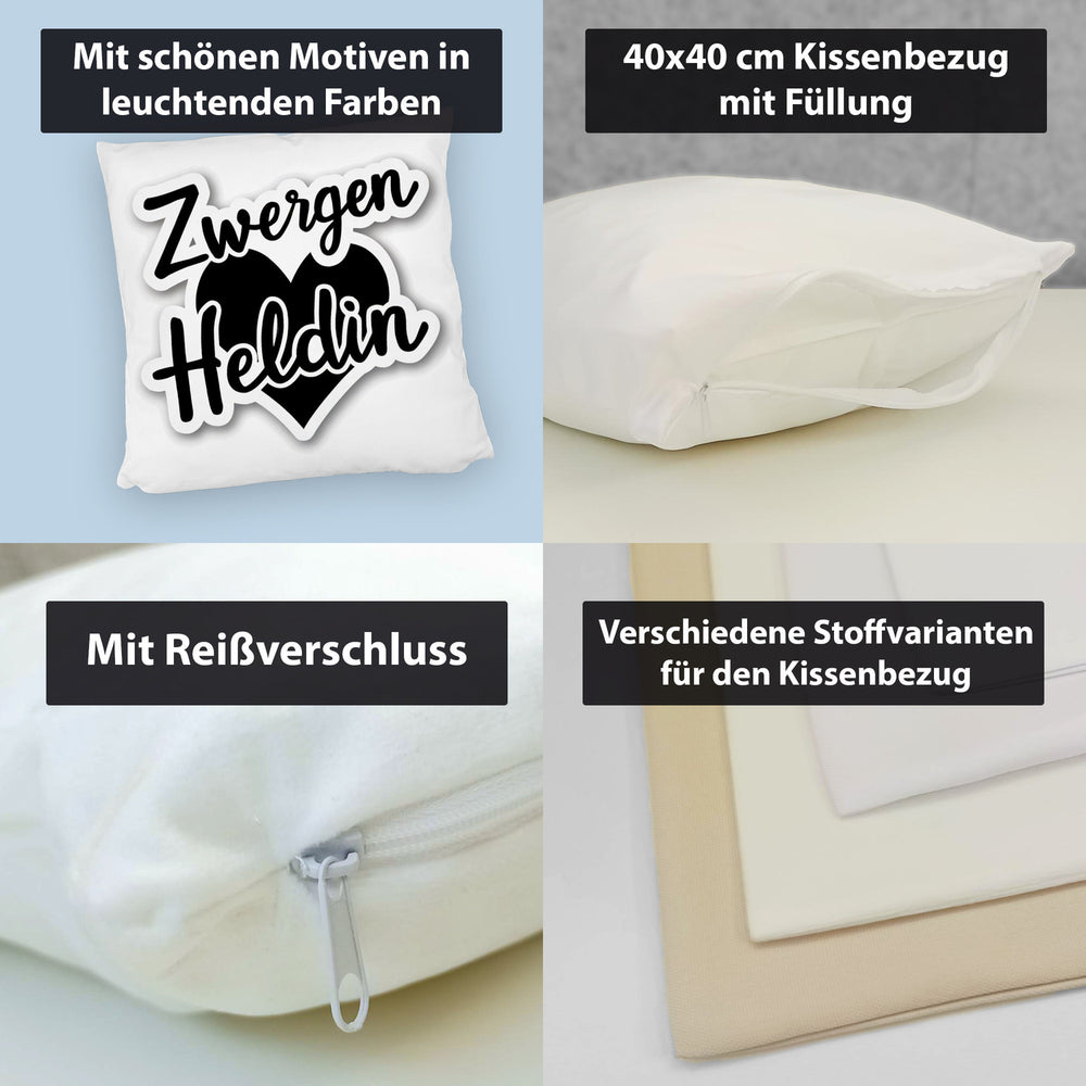 - 1x Zwergen Heldin mit Herz Kissen für Erzieherinnen in der gewählten Ausführung